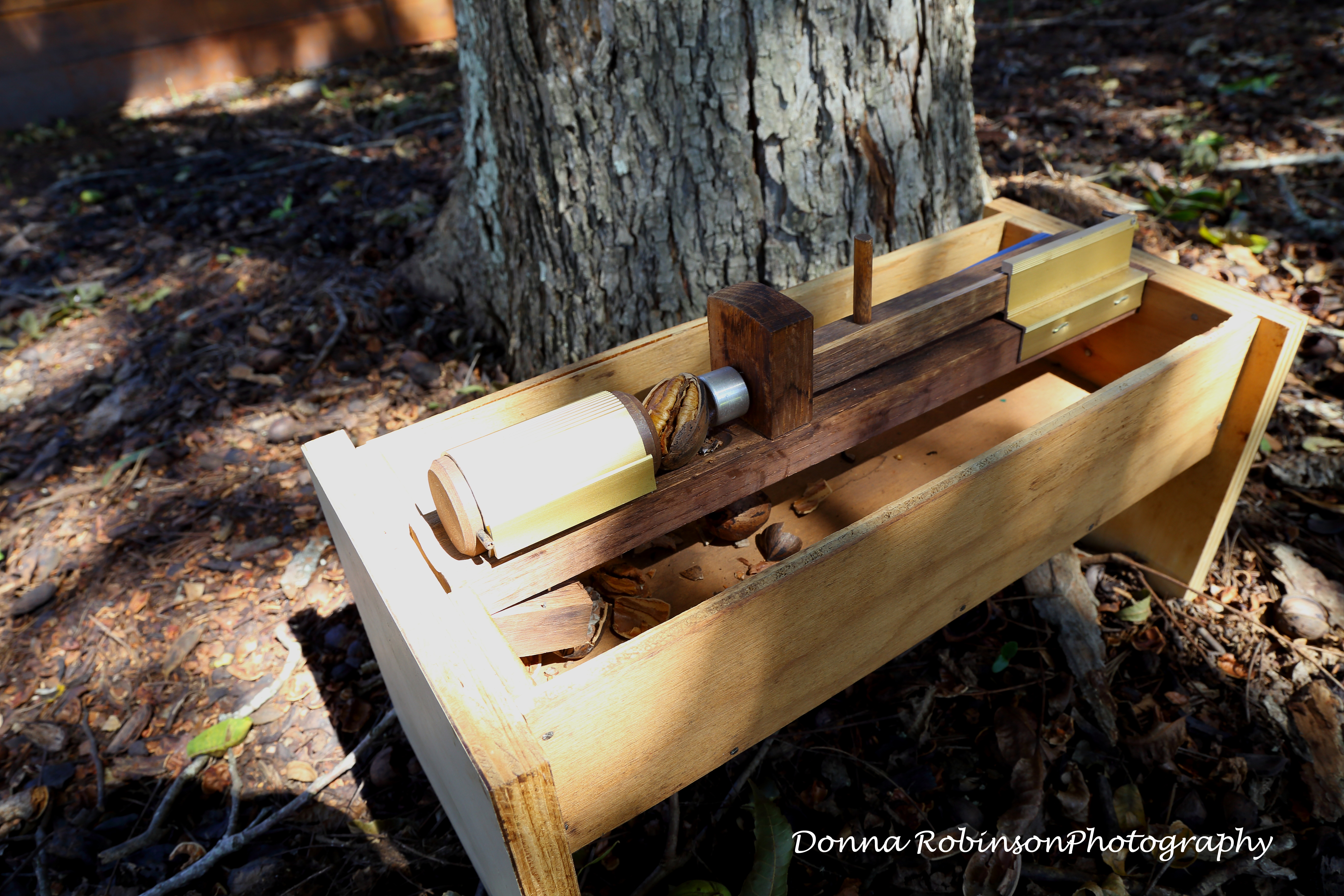 On our next trip down to SSI, I brought “The Nutcracker” with me, ready to put it to work!  One by one, I gathered up the freshly dropped pecans until I had a pile worthy of cracking.  It took me a few times to remember the mechanics of how “The Nutcracker” worked.  But, eventually the memories and the motions came back to me with each “pop,” “pop,” “pop,” “crack” of the sliding hammer!  The fresher the nut, the more “pops” of the nutcracker it took, until finally the remaining shell pieces could be picked away, revealing the perfect meat of the pecan.