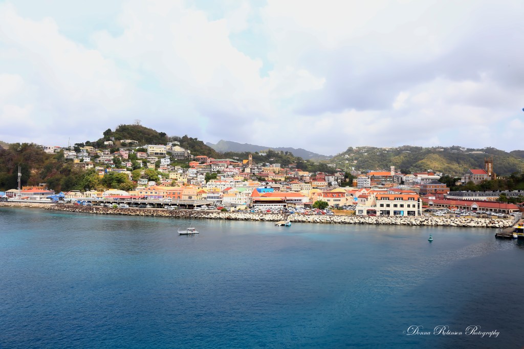 While we were docking into our next to last port of call in Granada, Michael and I were standing on the bow of the ship checking out the city. The colors and lines of the various buildings peppered the mountainside flowing, as if, into the blue waters of the Caribbean coastline.