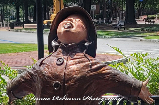 My first thought with this statue was “I wish it was raining so I could really capture the true essence of playing in the rain.” The statue was part of the 2007 Sculpture Walk in Columbus and the artist is Susan Geissler.