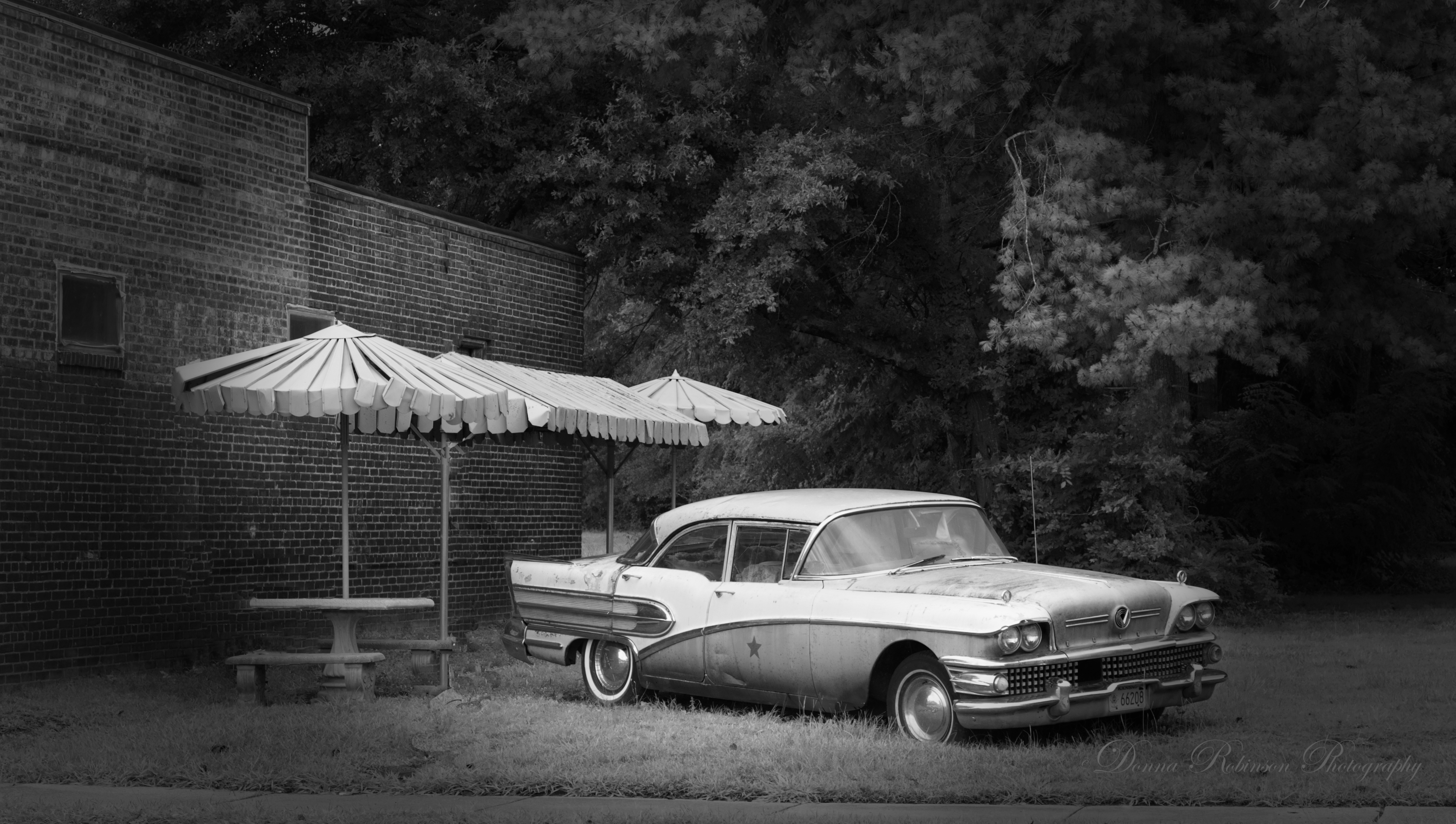 I made one last edit and created a black and white version. A nice shot, too but since this post is about a pink Buick, the color version tells a better story.