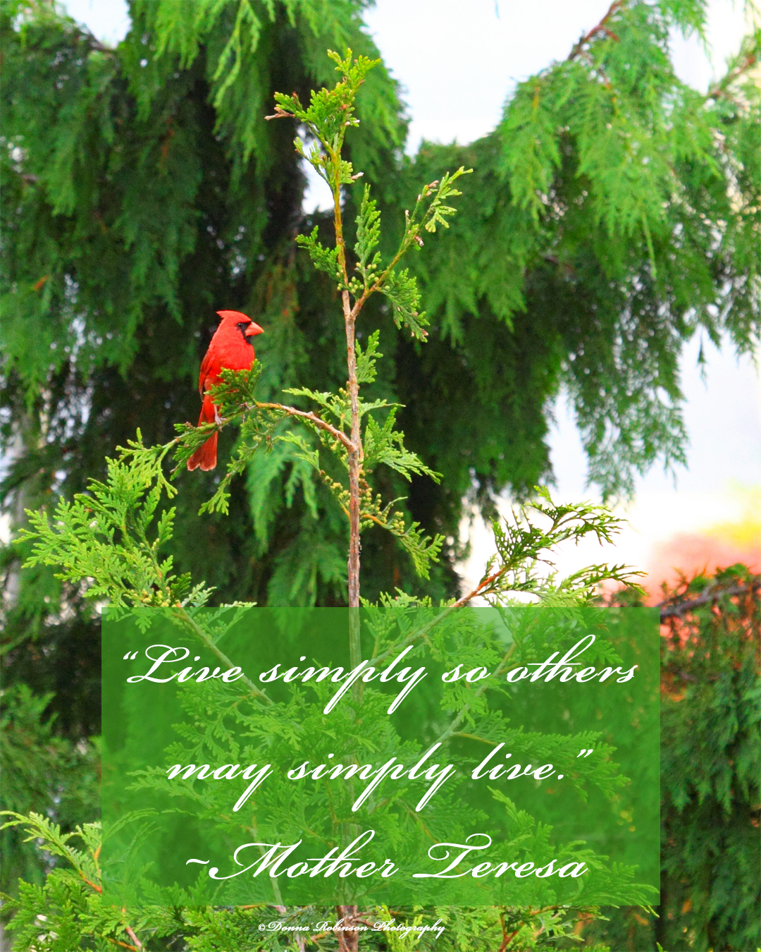 “Live simply so others may simply live.” ~Mother Teresa I’m channeling a little bit of Mother Teresa, today. She had so many beautiful quotes about life, but especially about living a life not for ourselves but for others. How do you live simply, so others may simply live?