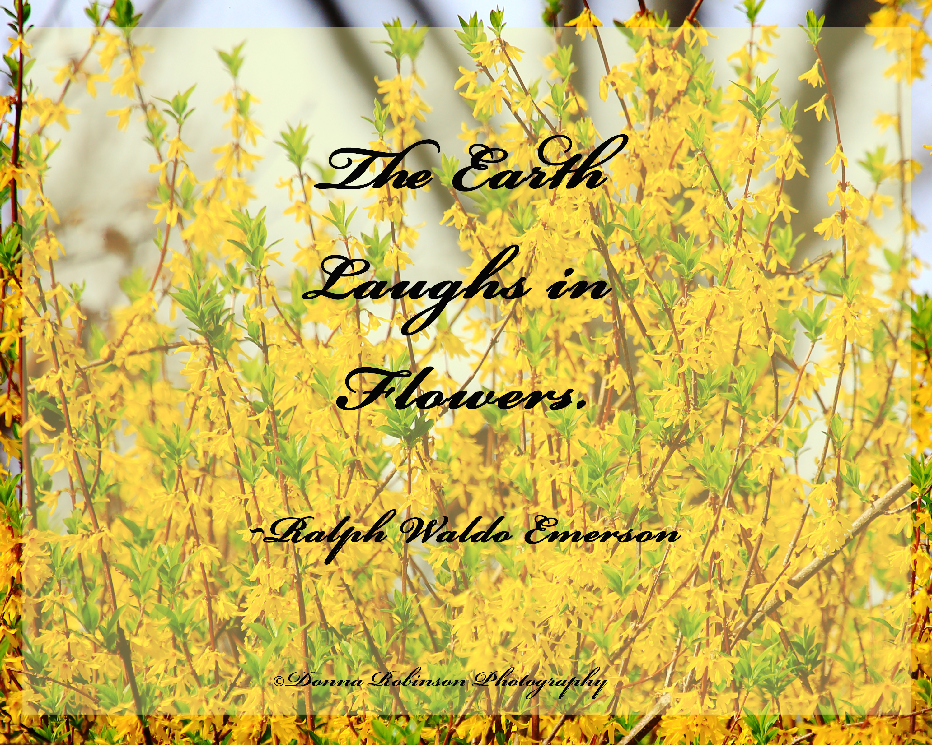 I did a double take when I first read this quote. But when I thought about our neighbor’s overgrown Forsythia bushes bursting up high above the fence line it made perfect sense. I can now imagine the earth bursting with laughter through the flowers as it awakens from the deep freeze of winter.