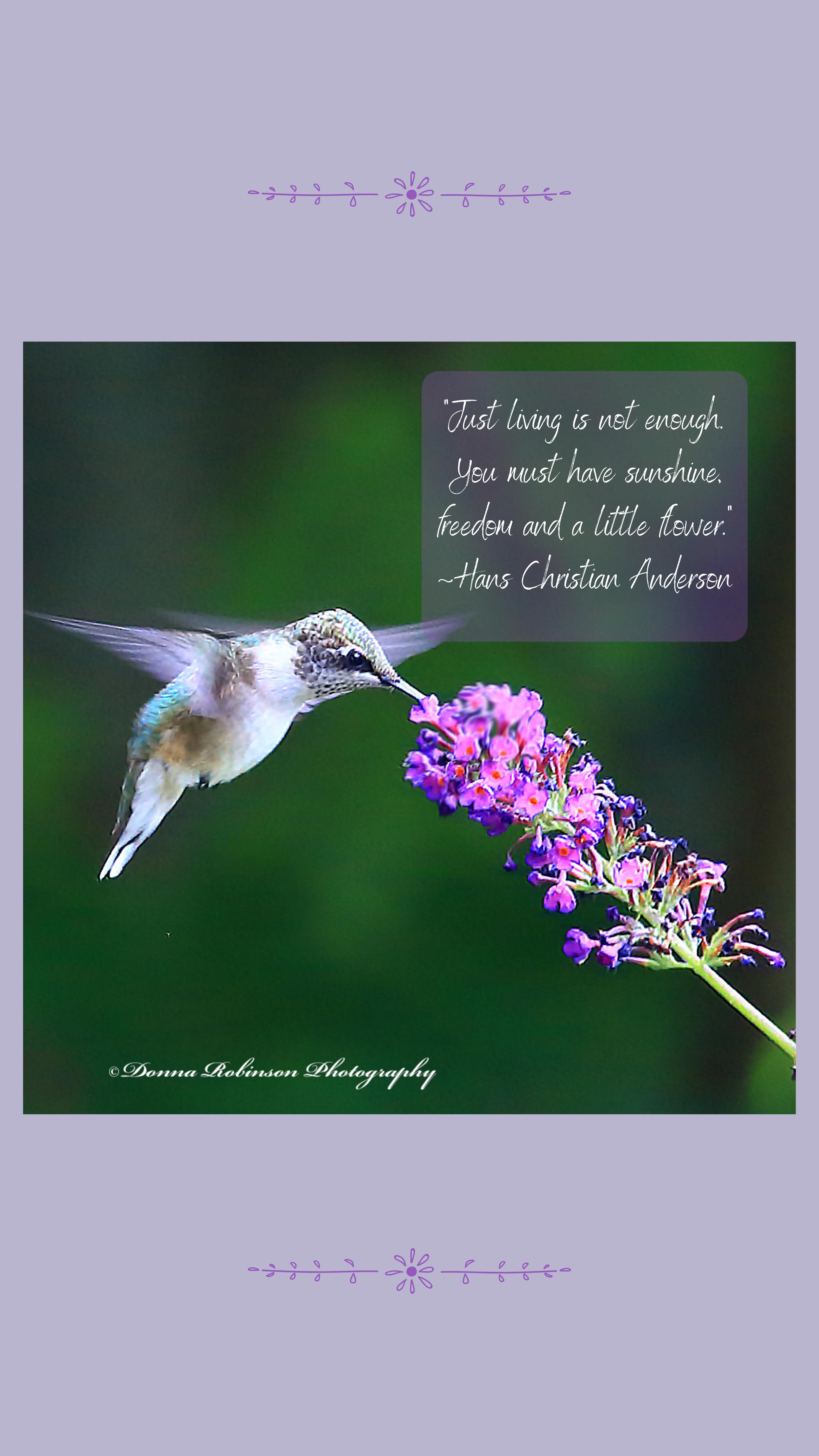 “Just living is not enough. You must have sunshine, freedom and a little flower.” ~Hans Christian Anderson